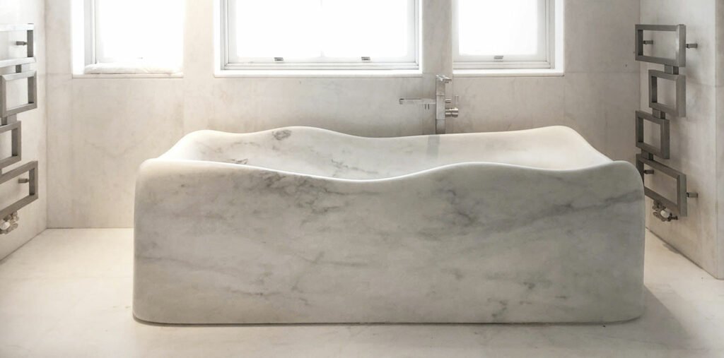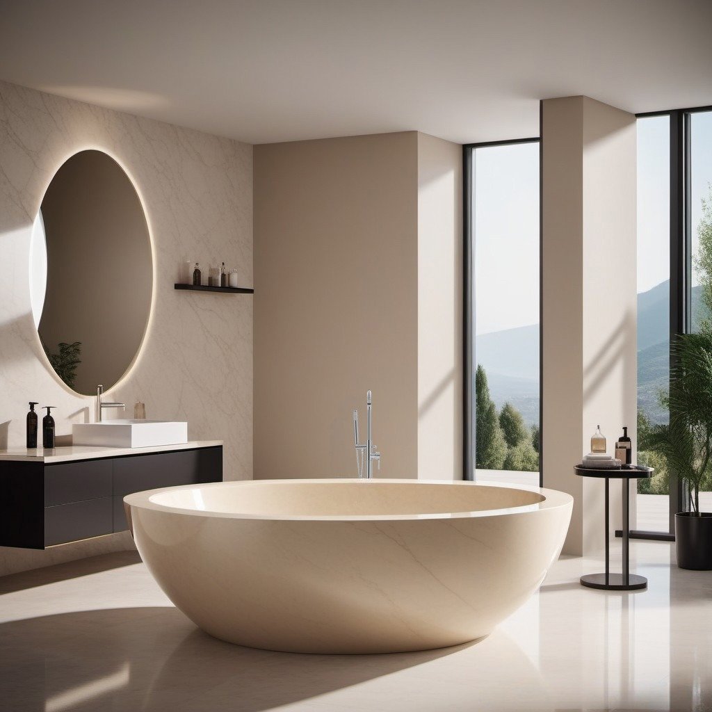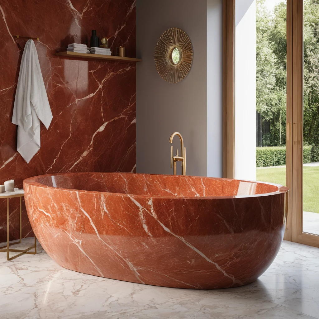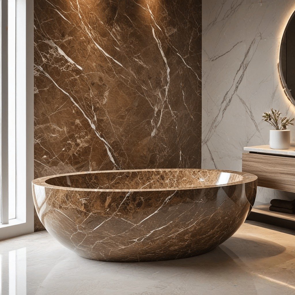 Indulge in a freestanding marble bathtub that blends ancient craftsmanship with modern ergonomics. Its thermal-retentive stone keeps water warm longer, creating a lavish bathing experience. Designed for master bathrooms or luxury resorts.